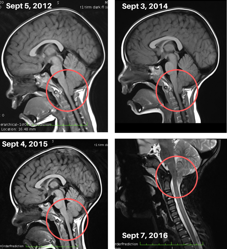 January 3rd: We were finally able to connect with Dr. Greenfield and his PA on the phone. He started out the call reviewing what he understood to be the situation at hand based off of our correspondence and said that based off the images from the CT scan, it gave validity to the things we are seeing on our end. He said that the CT scan did show a considerable amount of calcification on the scar tissue and this could be the reason for her symptoms. Her brain stem is compressed, and Dr. G feels like Henley could benefit from another surgery.